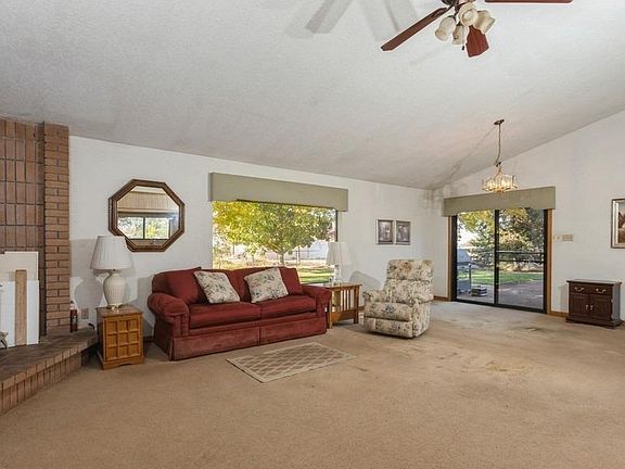 Comfortable single story home on a great piece of land The house sits back from the road and is surrounded by trees in the front and back yard. Great room concept with the kitchen and living room open together with great natural light and a wood-burning stove. Plenty of counter space and storage in the kitchen. Spacious main bedroom with two closets, one being a California Closet System Main bathroom has double sinks, a vast double length mirror, shower stall and soaking tub. Second bedroom is a junior suite with its own bathroom. Massive shop on the back of the property with vaulted ceilings and multiple roll up doors. Beautifully manicured lawn front and back with numerous nut trees. This expansive property has room for all your toys