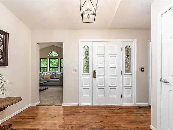 Beautifully updated & maintained ranch style home nestled on a 1.99 acre wooded lot in New Albany! Plenty of spacious living area with vaulted ceilings and natural light. Updated bathrooms, light fixtures, & new 6-panel doors throughout. Kitchen w/ stainless steel appliances, freshly painted cabinets, & casual dining space with large bay window. Spacious family room with vaulted ceilings, two-story brick fireplace and sliding glass door that opens to the deck. Large master suite w/ new carpet and walk-in closet. 2 additional bedrooms + full bath also on main level. Finished LL with rec room, kitchenette, 2 bedrooms (1 w/ egress window), & full bath. Plenty of storage. Whole home gas generator. New hot water tank, new a/c, Arzel HVAC. Separate garage building with space for 6 cars!