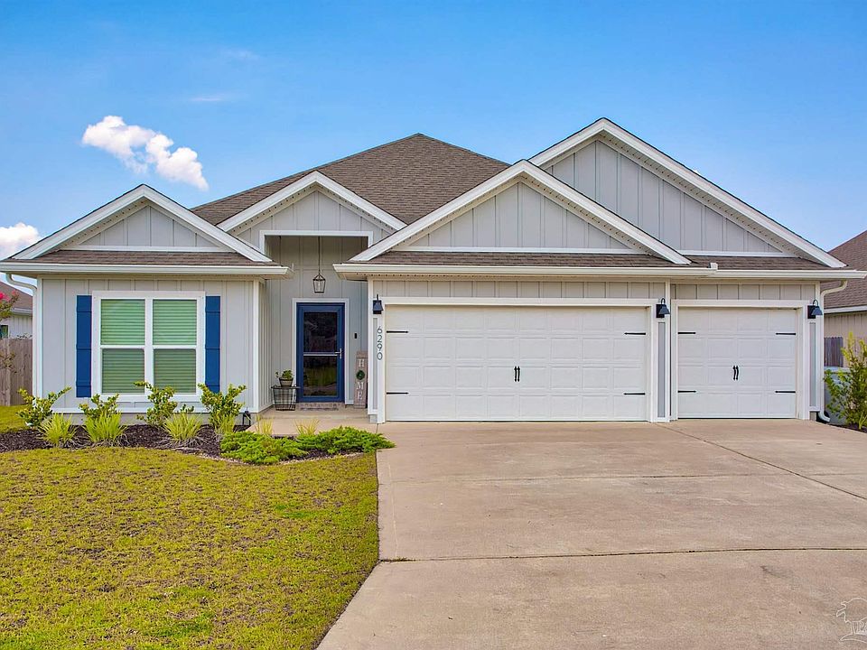 Welcome to 6290 Jenks Drive Gulf Breeze, this neighborhood offers a community pool! LOW rate VA eligible assumable loan! Destin floorpan, 4 Beds ,3 Baths, 2,304 Sq Ft. Tucked away in the highly desirable Forest Bay Estates community, this immaculate craftsman-style home is a great find that effortlessly blends comfort and modern living—all just minutes from the emerald waters of the Gulf Coast of Pensacola & Navarre Beach. Built in 2022, this one-story residence welcomes you with beautiful curb appeal, a wide 3-car garage, and clean architectural lines. Step inside to an expansive, light-filled interior with high ceilings, luxury wood-look flooring, and an open-concept layout ideal for both relaxed living and entertaining. The classic kitchen is complete with granite countertops, a large center island, stainless steel appliances, modern shaker cabinetry, and a generous walk-in pantry. Whether you're hosting brunch or preparing weeknight dinners, this space was designed to entertain or relax. Retreat to the owner’s suite, a private haven featuring a spacious bathroom with double granite vanities, a soaking tub, walk-in shower, and an oversized walk-in closet. Three additional bedrooms and two full baths offer plenty of flexibility for guests, home office, or growing families. Step outside to your covered patio, perfect for morning coffee or unwinding at sunset. The spacious backyard offers room to play garden or simply relax. Note the epoxy coated floor in the garage and the areas fantastic schools. Schedule your personal tour today!