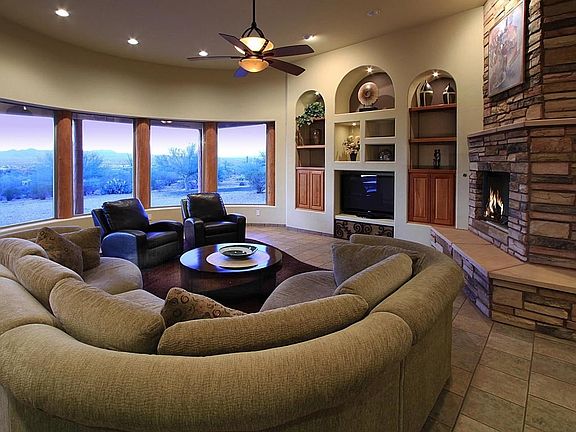 For more information on this property, contact the Listing Agent, Heather Shallenberger at (520) 918-5917 or heathers@LongRealty.com. List price range seller will entertain offers between $499,900 & $525,000. Private hilltop estate nestled on 3Plus acres adjoining Saguaro Ntl. monument w/ miles of trails to enjoy. Secluded location yet minutes away from modern amenities. Pananoramic mtn/city views eloquently appointed w cherry cabs, granite, mahogany wood accents,designer colors, high ceilings & unique architecture which add distinctive appeal. Private mstr retreat w/balcony to enjoy twinkling city lights, sunrise & sunsets & a walk in closet the size of a room! Brand new mstr bath retreat, exec height vanity, Jet tub & huge walk-in shower. Fresh paint inside & Out. Extra Deep 3 car RV garage & storage room. TEP guarantee home boosts quality construction! Room for horses too! Plenty of flat usable land.