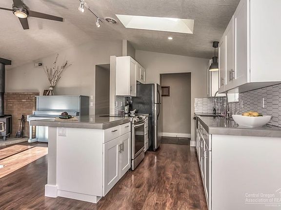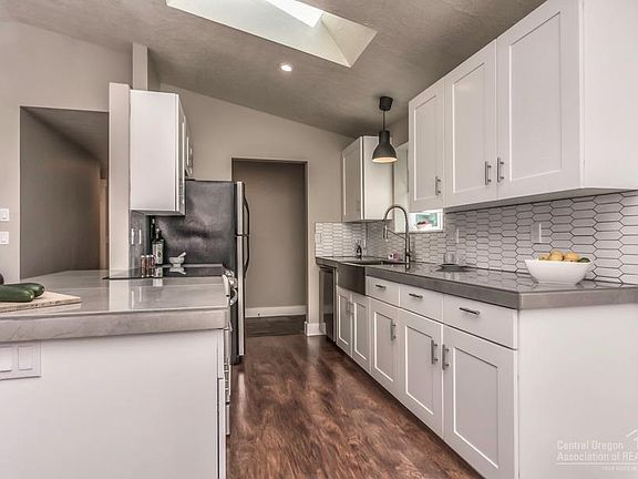Beautifully renovated contemporary sun-filled single level home. A 300 sq. ft. addition and home remodel in 2016 includes a spacious master suite with mountain views, vaulted ceilings, sliding doors that lead to a large deck, spacious ensuite with a jetted tub, a spa-like feel, big walk-in closet, floors, trim and paint throughout the home, and updated guest bathroom. 2018 update and remodel of kitchen - cabinets, counters, sink and backsplash with stainless steel appliances. Open floor plan. Rare expansive fenced backyard for play, entertaining, gardening - landscaped including Trex deck, stamped concrete patio, auto sprinkler system, fruit trees with wonderful open Cascade Mountain views. Enjoy close proximity to St. Charles, Pine Nursery Park (one of Bend's best), schools, dining, Costco, and canal trails. Extra storage, shop area and parking. All appliances included. No HOA dues. Clean, bright and move-in ready. You need to see this home!