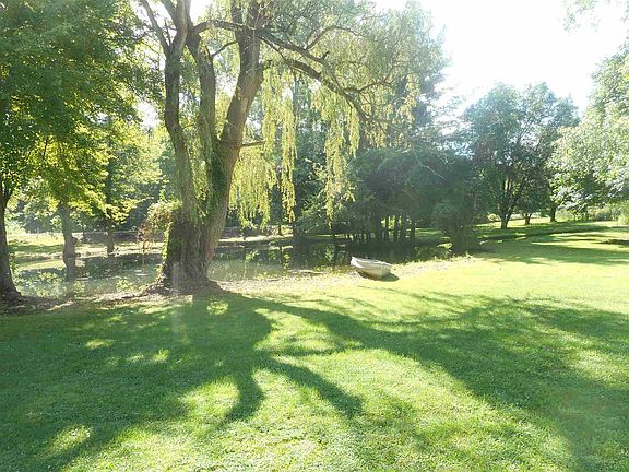 Elegant California ranch style home on a 3.62 acres of land with 3 bedrooms, 2 full baths and half bath. Situated on a picturesque hill overlooking a small pond surrounded by Willow trees, wildflowers, and wild black raspberries in a country setting. Built in the `70s, this house ascribes to the design ethos of the ranch style--following the contours of the land, the house prioritizes an open floor plan with plenty of space for family to gather. The exterior is freshly painted with flagstone accents, complimenting the natural environment around it--a pond, open lawn, and forested areas--all on more than three acres in Greene Township. The location is close enough to the amenities of the South Side, West Side, and Downtown, but with all the space, security, and solitude of a rural locale. Inside, three bedrooms--including one master bedroom with en suite bathroom--mean this house is ideal for a family. A finished basement provides extra space for a home office, gym, den, or play area, in addition to a family room, dining room, living room, and large kitchen. Fresh carpet, paint, and new lighting fixtures throughout much of the home make it move-in ready--ideal to enjoy the last months of summer and watch the changing of the seasons through the property's abundant Elm, Oak, Sycamore, and Mulberry trees. A large back deck is an ideal relaxation zone in temperate months; in colder months, the living room has a wood burning fireplace for maximum coziness. Close to Potato Creek State Park, here wildlife abounds, stargazing is fantastic, and there are plenty of opportunities to garden, gather around a bonfire, or simply enjoy the quiet of nature--all from your own home.