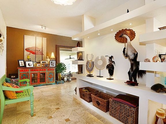 Sellers exceptional attention to detail is not only creative, but functional. This 3/2, (one bedroom converted into two separate home offices), 2,554 adj sf home on 15,647 sf corner lot in the center of South Miami is its own destination. The mature landscaping with walls of privacy hedges envelop you green, saline pool is an inviting blue contrast and the grounds offer a many places to gather...vine covered gazebo, Zen garden, large pool deck. 2-car garage acts as artist studio/dream workshop with built-ins, epoxy floors. Unique grand entrance with custom built lit wall unit to display collectibles/artwork, great room, formal dining with pass thru to kitchen with S/S applicances and stone counters, marble floors, barrel tile roof, accordion shutters, fruit trees, paver drive and gated.