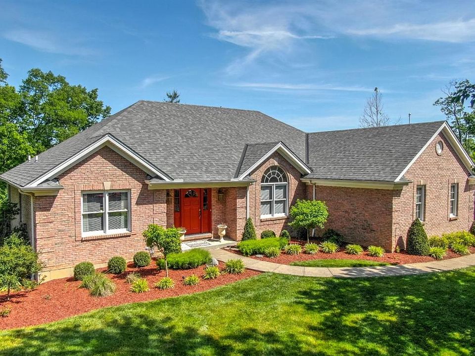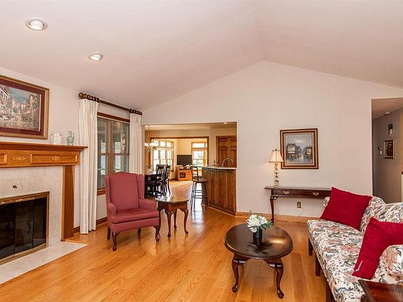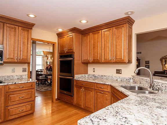 Elegant Brick Ranch 2 bedroom, 3 full baths located on a half acre private wooded setting. Open floor plan, hardwood floors, granite counter tops, great room with cathedral ceiling & gas fireplace, enclosed three season deck, first floor laundry. Lower level rec. room with second kitchen & walkout. Two car side entry garage.