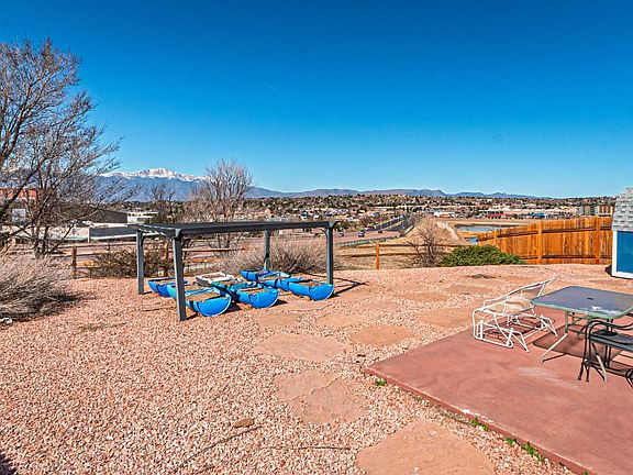 Stunning Four-Bedroom Ranch with Spectacular Views and Ideal Location. This beautifully maintained ranch-style home offers a rare blend of comfort, convenience, and breathtaking natural beauty. Located just minutes from popular shopping centers and Peterson Air Force Base, this gem backs to open space and boasts unobstructed views of Pikes Peak and the Front Range. Enjoy the ease of main-level living, featuring a spacious eat-in kitchen equipped with sleek stainless steel appliances. From here, step out onto a large, private fenced backyard, perfect for entertaining or relaxing while taking in the stunning views. The backyard also includes a charming garden area, ideal for cultivating your favorite vegetables or flowers. The expansive basement adds even more value with a massive recreation room-ideal for movie nights or family gatherings-plus two additional generously sized bedrooms and a beautifully appointed bathroom, making it perfect for teens or guests. Recent updates include a brand-new water heater, a new roof installed less than a year ago, and a newer central AC system, ensuring peace of mind for years to come. This home is move-in ready, offering both practical functionality and a serene setting with scenic vistas that will take your breath away. Don't miss the opportunity to call this remarkable property yours!