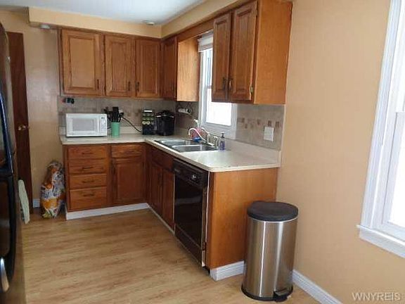 Town of Lockport. Easy commute to Amherst, Buffalo, Niagara Falls. Updated vinyl siding and most windows. Fully fenced yard. Large 2 car garage along with nice enclosed breezeway. Modern kitchen with updated flooring-3years. Ceramic tile backsplash along with custom woodwork. Livingroom is bright and cheerful thanks to the large picture window. New carpet in LR. Modern 1st floor full bath with ceramic tile flooring. Two 1st floor bedrooms. 2nd floor features a large bedroom w/additional room. Could be a master suite. Full bath-2nd flr. gas furnace-2010. gas HWT-2010. glass block windows.