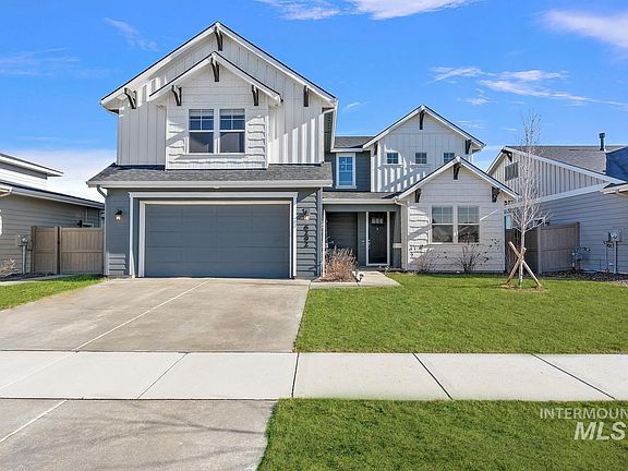 Stunning Home w/versatile floor plan & great location! No rear neighbors & amazing view of Boise Mtn range! Close to YMCA, golf courses, private soccer field, shopping, frwy, parks & community pool! Home is 4bed plus office & bonus or use as 6 bedrooms! 3 full baths! Extra long 25x10 extended 3rd bay on garage. Main level features; 9ft ceilings, office/bed, full bath, gas fp w/floor-ceiling stone & wood mantle, ceiling fan, 2-tone paint, mud rm, full wood wrapped scenic windows, blinds & more. Light & bright kitchen w/abundance of wht cabinets w/crown molding, undermount sink, granite, island/bar, full subway tile backsplash, pantry, ss gas range, double oven & spacious dining. Primary Bed w/oversized windows capturing Mtn. View, barn door & ceiling fan. Primary bath w/separate shower & soaker tub, huge granite vanity w/dual undermount sinks & walk-in closet w/custom organizer. Bedrooms w/ceiling fans. 15x13 Bonus Rm/6th Bed. Covered rear patio w/extended patio, vinyl fencing, sprinklers & more! See tour!