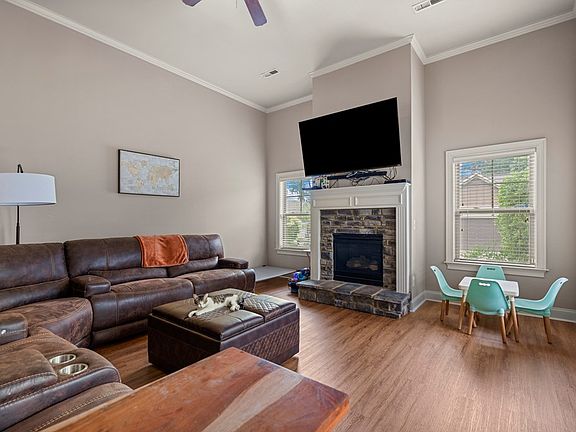 This beautiful Midland home offers 3 bedrooms, 2.5 baths, and an open-concept layout with tall ceilings and a stone fireplace in the great room. The main level features specialty moldings, a spacious kitchen with granite counters, and a master suite with dual walk-in closets, a tiled shower, and jetted tub. Two additional bedrooms share a Jack & Jill bath. Upstairs includes a large bonus room and reading nook. Enjoy two covered porches, a 2-car garage, and a prime location close to shopping, dining, and more. Pull into the picturesque drive to your new neighborhood with idyllic walkable old-towne community vibe sidewalks. This home offers a lifestyle of leisure and access and is a short drive to the Fort Benning main gate.