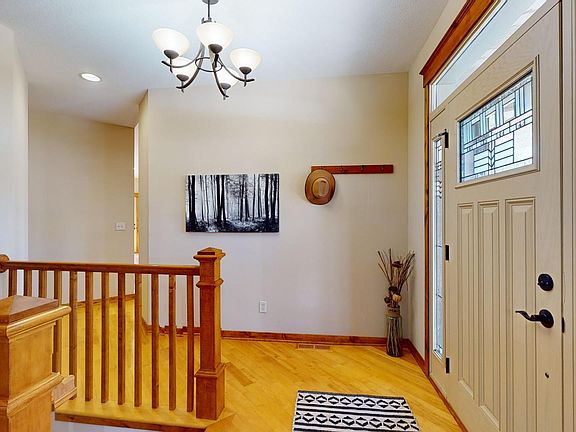 Absolutely stunning 1-story ranch style home with a finished walkout basement, 3-car finished garage and located near parks & trails. This quality-built home has pride in ownership and is in move in ready condition, be sure to check it out today! The main floor open floor plan features red birch hardwood floors, custom maple kitchen cabinets, stainless appliances, granite countertops and center island which all open to the great room with 12ft vaulted ceilings, gas fireplace and deck access. There are three main floor bedrooms that all come with ceiling fans. The large primary bedroom has a walk-in closet and private bathroom with tiled floors, dual sinks, whirlpool tub and walk-in shower. The oversized lower level perfect for entertaining with a large family room featuring a 2nd gas fireplace and walkout. New carpet throughout the house in April of 2024, laundry is available on the main floor (hall closet) and in the basement where there is a laundry room with utility sink.