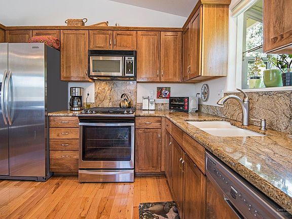 NEW PRICE! Check this out, large corner lot in wonderful NE neighborhood. Builder's own home. This home is light & bright, well appointed windows, granite, hickory hardwood floors, gas fireplace, recent appliance upgrades, island in kitchen for entertaining. Hickory cabinets in the kitchen, garden window, very nice secluded patio, beautiful landscaping with custom built waterfall feature. All this plus RV parking and an oversized garage. Tankless & recycling system. Sellers are downsizing.