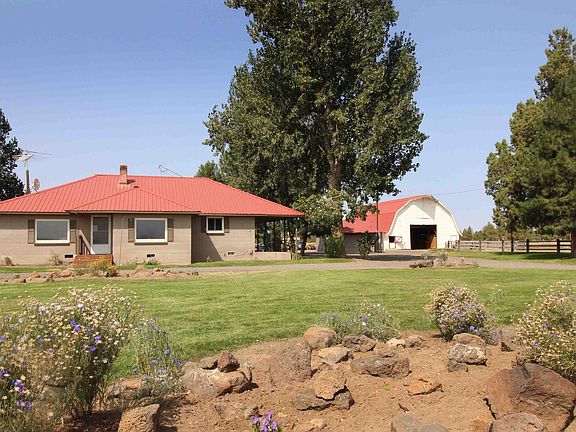 Just 13 scenic miles east of Bend, lies a small-acreage surrounded by spacious views of farm fields, the Cascades and other mountains. Watch the sunset on the back porch and enjoy the sound of wind in the poplar trees and then come into the bright, cheery, open-floor-plan house and cook dinner in your updated kitchen featuring SS appliances, stone counter tops, beautiful cabinets and pretty laminate flooring. Watch your horses, dogs or kids play through the kitchen window because three acres of the property is tightly fenced to keep them all safe. Back outside, the 3,0000 sf, old-fashioned barn has a large stall and lots of hay storage. There's a large corral and the irrigated pasture could hold 4H projects, horses, or ???. New septic tank Oct. 2020, Air purifier in heat pump. Two water heaters.