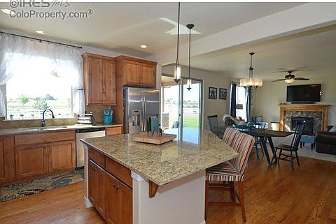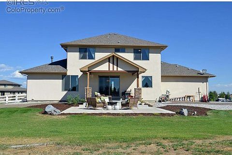 Elegant country home with 1.2 acres, mountain views, all on a peaceful, quiet street. This "almost"new home has a high-end, gourmet kitchen with slab granite counters, stainless appl, and spacious island! Practical main floor master, study and 3 bedrooms + loft upstairs. New carpet and custom stone and stucco exterior. Popular side-load 3 car garage, newly expanded patio and beautifully landscaped. Easy access to I-25 makes for a quick commute. Country living but close to everything!