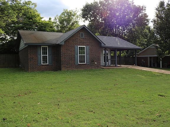 Awesome house located on a large corner lot! This home has New paint, New Flooring, SMOOTH CEILINGS, New windows, and is move in ready. Kitchen has tile floor with freshly stained cabinets and a large eat in area. The Kitchen is open to the den that has wood laminate floors. There are 3 bedrooms with new carpet and 1.5 baths with tile floors. Outside there is a cute front porch, a 1 car carport, privacy fenced yard, and storage galore. There is a 16x16 outbuilding with electricity in addition to another shed and a storage room under the carport. This is a must see! Make your appointment today to view this home.