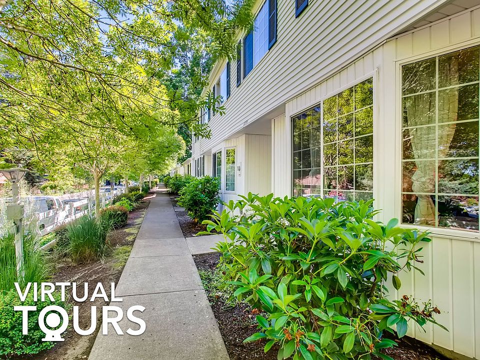 Spacious and immaculately designed townhouse with 3 bedrooms, 2.5 bath and 1,446 square feet in Beaverton! This spectacular home is perfect as a starter home, for downsizing or as an investment property. Highlights include a fantastic open layout, crown molding and laminate wood flooring throughout the main floor, abundant natural light plus a private back patio for outdoor enjoyment. Entry foyer opens up to the formal living and dining rooms featuring laminate wood flooring, plenty of entertainment space and huge bay windows that flood the space with natural light. Floor plan flows to the bright open kitchen boasting natural oakwood cabinets, beautiful countertops, mosaic tile backsplash, crisp white appliances, pantry and a nicely-sized dining area w/ brick fireplace and sliding glass doors that lead out to the back patio. A powder room down the foyer hallway completes the main floor. All three bedrooms are located upstairs, well-appointed with plush carpet flooring, large windows and ample closet space. Master bedroom offers great personal space, gorgeous windows looking out the back patio, walk-in closet and en suite featuring a vanity, real wood cabinets, tiled countertop w/ pendant lights and a glass enclosed standing shower. Shared hallway bath has a vanity, real wood cabinets and a shower/tub combo. Fully enclosed back patio offers great privacy, sun, well-maintained landscaping, access to detached garage and plenty of space for weekend BBQ cookouts or outdoor gatherings. Detached 2-car garage located at rear of the home. HOA $520 covers water, sewer and trash collection. Future HOA upgrades include replacement of LP siding with modern vinyl siding and new roof installation scheduled this month. Quiet and tranquil community with a clubhouse and private swimming pool, close to shopping and dining along Murray Blvd and Allen Blvd intersection, a few blocks from Schiffler Park, Fir Grove park and other neighborhood parks for recreation. Just a couple of miles from downtown Beaverton and the Farmers Market. Don’t miss out!