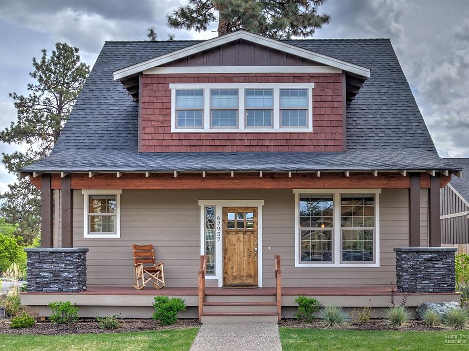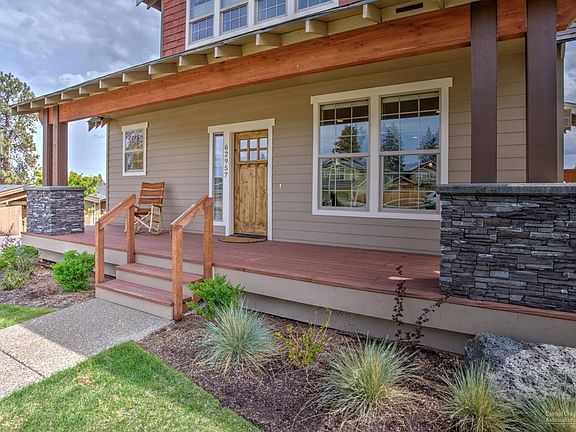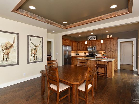 Convenient location in quaint Ponderous Pines addition with Deschutes River Trail access just a short distance away. Northwest cottage architecture offers 9 ft ceilings, great room living with open kitchen, island w/granite counter top & pendant lighting, coffered ceiling dining area, wood flooring in main area and master bedroom, large laundry/mud room, large double garage, master on main floor, two bedrooms up with bath and open loft/bonus room.
