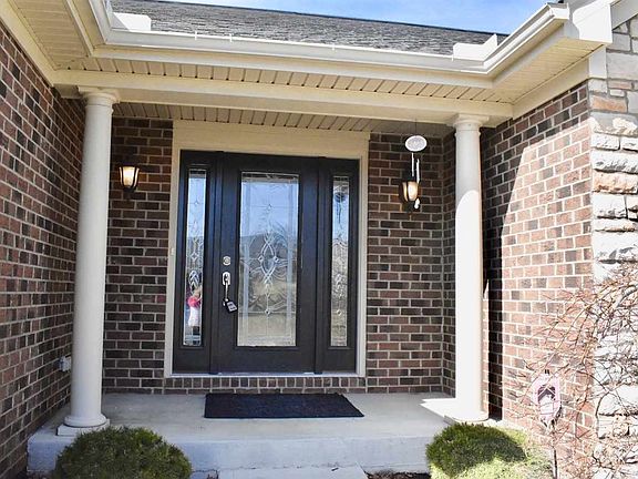 Stunning ranch only 6 yrs old in the Hunters Ridge Subdivision, features an open floor plan with cathedral ceiling, display shelving, gas stone fireplace, island with counter bar seating, 3 bdrm, 2 full bath. Backyard is fenced with view of the pond and patio. Quiet no outlet street. Great for entertaining. Tankless water heater. Association dues include pool and snow removal. Basement has high ceilings and is pre-plumbed for bathroom.