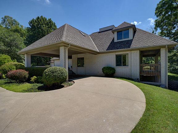 White brick contemporary on a woodsy 1.51 ares with beautiful in-ground pool. An over sized 3 car garage is connected to the home by a breezeway. In front of the home is a circular drive and portico. Inside the rooms are extra spacious and there is an abundance of built-ins and cabinets in every room. Hardwood flooring is in the formal living room and formal dining. A see through FP is shared by the living room and kitchen. The eat in kitchen has slate flooring, black granite counters, black appliances and enormous amount of cabinets and pantries most with pull out shelving. Also on the main level is a room used as an office by the sellers but could be a 4th bedroom and has a bathroom adjacent. A few steps down is a great room and a few steps up are three bedrooms