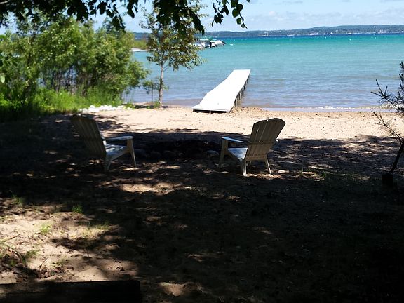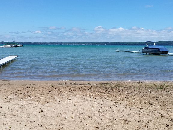 This beautifully crafted home would be the perfect vacation or year-round home. The first floor features a large laundry room and a suite with full kitchen and full bathroom that could be used as part of the home or as separate quarters for a mother-in-law/guests/or a student. Suite has a king size bed, living area with couch, tv, full kitchen with appliances and a full bathroom.The second floor has two bedrooms (one with king bed and one with twin beds) and tvs. A large open kitchen/dining/living area with couch, tv, dining table/chairs. Kitchen featurs quartz countertops, stainless steel appliances and a butcher block eating island.2 car garage. includes large view of East Bay and 50 ft of private sandy beach access.Additional photos available upon request. Additional property info: http://www.forsalebyowner.com/listing/3-bed-Vacation-Home-for-sale-by-owner-6297-East-Shore-Road-49686/23978260?provider_id=28079