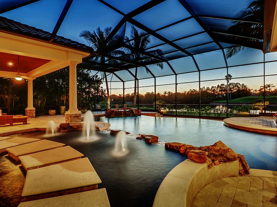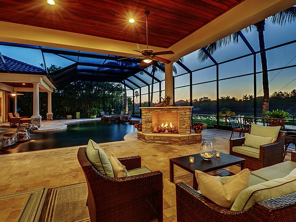 **JUST REDUCED $200K** MOTIVATED SELLER Rivaling some of the finest views Quail West has to offer is this magnificent estate home of almost 4,700 sq ft overlooking the lake and 12th green of The Lakes course. Through the impressive entry you will be captivated with a direct view of the outdoor entertaining space being second to none from the gourmet style kitchen and gas fire place to the infinity, gratto style pool and spa. An oversized master suite and luxurious master bath on the South wing provides your 3 guest suites plenty of privacy on the opposite end. The Media Room can be converted to a 5th bedroom as needed, while the 3rd car garage can be a functioning aerobic studio. The Grand Clubhouse includes private beach club memberships, 70,000 sq. ft. of fully renovated world class dining, fitness & spa, tennis, pickle ball, and 36 holes of one of Florida's most exclusive golf clubs designed by Arthur Hills. Social membership valued at $35,000 included in sale. There is currently a waiting list for their private beach club, however not with this home, there is one available.