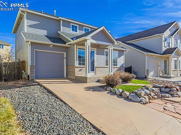 Welcome Home to the sought-after Ridgeview at Stetson Hills neighborhood! This lovely community features fantastic District 49 schools- in fact, Ridgeview Elementary, Skyview Middle and Vista Ridge High Schools are ALL in walking distance! There are also great neighborhood parks, including the fantastic Snowy River Park just a short walk away. This is a great location, just minutes to all of the Shopping and Restaurants available in the Powers Corridor. This home is a unique product- a small, entry-level home that features a quaint backyard, true Master Suite, and an oversized garage, all at a price point that you'd more likely expect to find a Townhouse! This home has great curb appeal, with fresh paint, and a low-maintenance front yard. The backyard is fenced as well, and the home offers a brand new Air Conditioning unit! The interior has a lot of natural light, and a comfortable floor plan. The Main Level offers high ceilings, and a spacious Great Room, Dining Area and Kitchen. There is additional Dining space at the Counter Bar, or in the Kitchen as well. There is a lot of cabinet space, additional storage and a Powder Room on the Main Level as well. The stackable Washer and Dryer convey with the home as well. The Upper Level features 3 spacious Bedrooms, including a TRUE Master Suite with huge Walk-in-Closet and attached Master Bath. This home is proof that sometimes the best gifts DO come in small packages. Welcome Home!