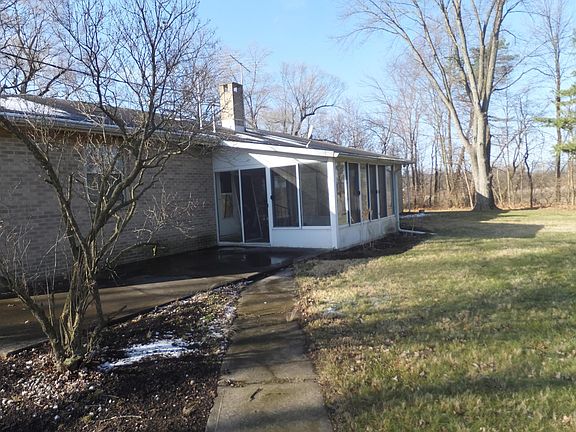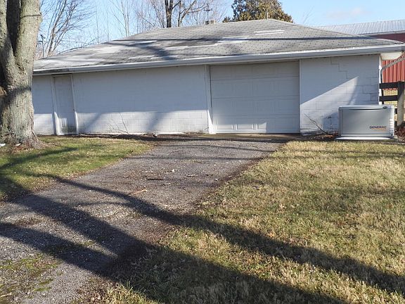 Nice brick ranch home in the country on acreage. This home features a large kitchen with appliances, large family room with brick fireplace, 2 bedrooms 1 1/2 bath. Possible hardwood floors throughout. Nice enclosed porch and patio. On demand hot water heater. If you need room to work this property has it! 2 car attached garage with storage room,24' x 40' block detached garage with overhead door, 28' x 64' pole barn with electric. Fenced pasture area. Owners just had $20,000 Everdry System installed. Home has a Generac backup generator. Property is on Village of Ashley's water system.