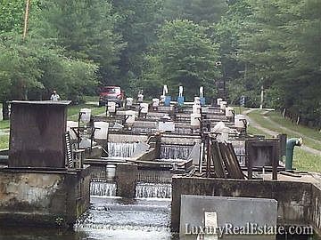 Working trout farm with pasture, waterfalls, river frontage and view lots! Borders National Forest Service lands.