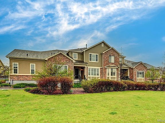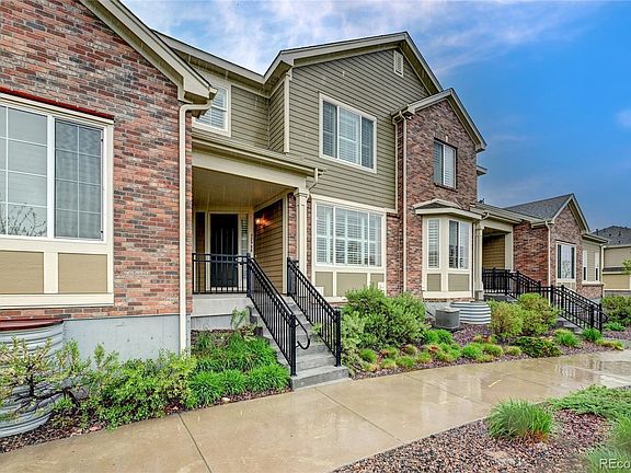 . SPECTACULAR PARK SIDE LOCATION! HUGE UPGRADES-LIKE NEW-LIVES LIKE A SINGLE FAMILY HOUSE! Quiet! Private! Two wonderful outdoor spaces including private covered front porch overlooking park/open space east facing to enjoy coffee in the morning and evening shade for cocktails later plus private enclosed patio. Fronts onto gorgeous landscaped park and gazebo! High Ceilings throughout! Lots of sun and natural light! Quality real wood flooring throughout main level and plantation shutters in most rooms! Main floor great room with granite finished gas fireplace. Open concept floorplan with gourmet chef kitchen featuring upgraded 42in cabinetry, upgraded stainless steel appliances (awesome gas range), large island, granite counters, generous pantry. Informal dining area off kitchen opens to private patio - great for entertaining! Sunny Living room/dining room overlooking park! Mud room entry off garage. Attached garage with high ceilings for future storage convenience. Upstairs you will enjoy the spacious sunny Primary Suite overlooking park with lavish finished 5 pc bath with granite, double sinks, luxury soaking tub and lovely tiled shower. Two other spacious bedrooms with large closets and oversized windows. Handy upstairs laundry. $45,000 professional basement finish affords great private guest area/teen/mother in law suite including large bedroom with egress window, sharp marble 3/4 bath with oiled bronze, non-conforming bedroom or den/study plus utility room with storage. Newer carpet and designer paint. Custom Crown moldings. Lovingly and impeccably maintained this home is move in ready. Walk to local shopping, Centura Health, Prestige fitness center, coffee shop, and grocery store! - drive down 64th and see all newer shopping/dining/recreation within minutes from home! Westwoods Ranch Golf 5 minutes away! Make this dream home your new home! Same unit on park closed recently at $650K with unfinished basement - this is a deal!