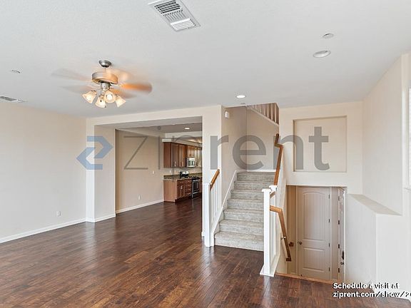 This property is a beautiful 4 bedroom 3 bath 3 story house is fully upgraded. From bottom to top: it has a 2 car Garage on street level with parking spaces for 2 cars in front of the garage, a small crawl space, 1st stairwell then front door/entryway landing with coat closet, 2nd stairwell to the living room (with gas fireplace), balcony, dining area, kitchen, 1st bedroom and bathroom (shower), and concrete backyard w/ grill, 3rd stairwell to Primary Bedroom with ensuite primary bath w/ soaking tub and two additional bedrooms and one bathroom (shower+tub), linen closet and laundry room.