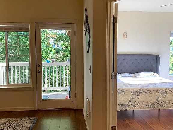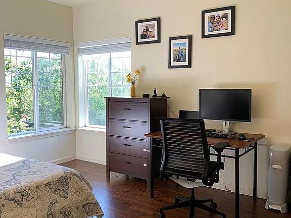 This is the one you've been waiting for! 2 bedrooms, 2 full bathrooms with detached Car Garage and 1-Permit parking slot. Comes with the following features - In-unit Washer and Dryer Jetted tub in master bath Hardwood/HQ Laminate flooring (No carpet anywhere). Gas stove High 9' ceilings Granite counter tops in kitchen Alder cabinets and stainless steel gas-range and dishwasher Gas fireplace accented with slate tile Large master suite has a corner window with a hill view A balcony overlooking the woods on the backside Electric wall heaters for every space On-site bike parking rack P.S. Photos are 2-year old as currently tenants are staying at the property. Pets not allowed. No Smoking. 1 Year Lease begins June 22nd 2025 (Negotiable). Rent: $1849/mo ( garbage, water, sewer and recycling included). Utilities extra. Unfurnished. Refundable security deposit: $2,000 + Last month's rent Credit Score: 660+ Renters insurance required.