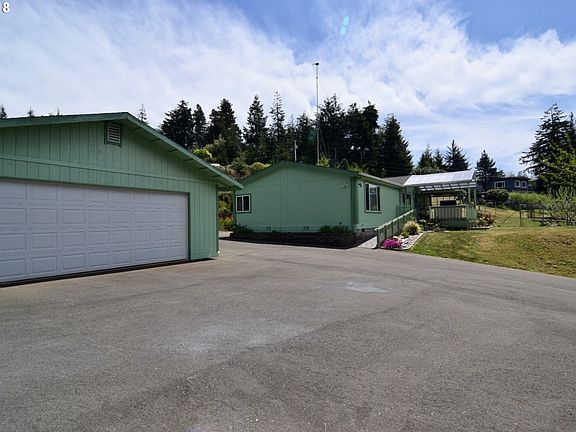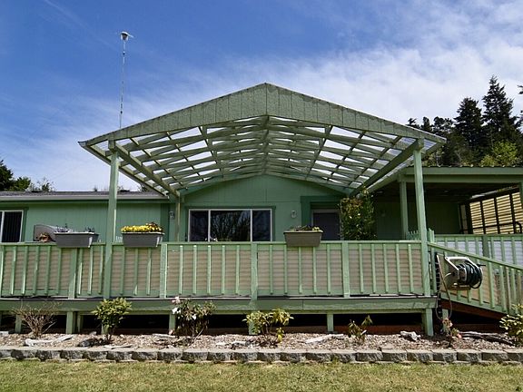 Tree lined views from this 3 bedroom 2 bath manufactured home on a little over 1/2 acre. Pride of ownership in this well maintained home with large garden and green house. RV/boat carport with a detached 2 car garage. Covered low maintenance deck with hot tub. Large living room with open concept and kitchen island. Walk in closet, 2 pantries and laundry room.
