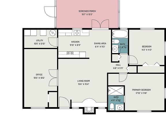- Ceiling Fan(s), Eat-in Kitchen, Open Floorplan, Primary Bathroom - Tub with Shower, Split Bedrooms
