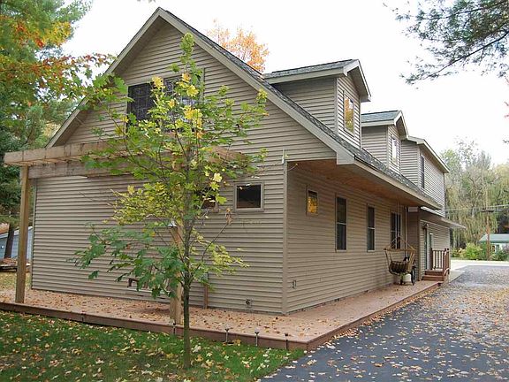 Comfortable home with many upscale amenities. Beautiful wood floors and walls throughout. Kitchen boasts cherry cabinets with quartz counter tops and stainless steel appliances.Master bath with cedar wood and ceramic tile and walk in closet.Entertain with living, dining & kitchen flowing together along with the inviting pellet/corn fireplace to warm your soul.The upper level has its own bedroom, kitchen, living and dining area along with a luxury bath with jet tub.Apprx. 640 Sq Ft upper level is unfinished but is ready to be finished to suit your desires with deck overlooking the lakefront.Large attached heated garage.Sandy beach and lake bottom, dock and 3 row boats included. Four guest cabins currently known as Hagerty's Northwinds Resort produce rental income to help pay the cost of ownership.