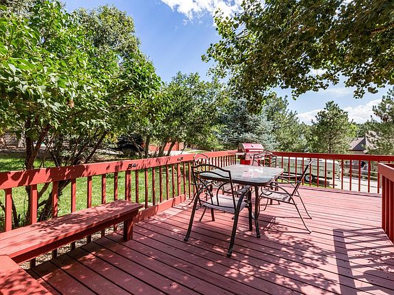 Stunning CUSTOM 2-Story w/ 4 Bdrms Up & a Fully Finished Light & Bright Garden Level Basement! ! Coveted Pinery Neighborhood! Amazing Views & Sunsets! Across from Open Space & Quiet Secluded Park! Brand New Roof July 2019! New Water Heater & Exterior Paint in 2018! Upgraded w/ Large Custom Windows, Quartz Counters, Newer Furnace & A/C, Solid Wood Doors, & Built-in Bookshelves! Open Floor Plan w/ Vaulted Ceilings, Formal Dining Area + Large Eat-In Kitchen w/ Hardwoods! Main/Upper Levels Include Upgraded Bathroom Floors, Updated Light Fixtures/Fans, Newer Carpet, & Newer Interior Paint. Relax on the Wrap-Around Deck & Take in the Views to Remind Yourself Why You Live in Colorado! 1/4 acre Lot Including a Large Front Yard, Trees, and a Low Maintenance Backyard! Finished Bsmt includes Plantation Shutters, Upgraded Bathroom, Wet Bar w/Mini-Fridge & Microwave, & Theater Area! Lots of Storage Space in Partially Finished Storage Room! Must See!