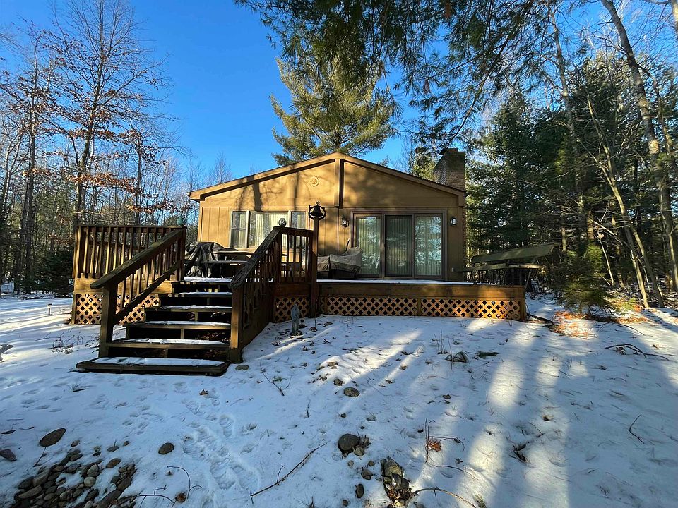 Escape to your own peaceful retreat with this fully furnished 3-bedroom, 1.5-bath cabin located on a stunning 330 acre all sports lake. With approx 1,175 sq ft of cozy living space, this charming cabin offers the perfect combination of rustic comfort and modern convenience. Situated on two spacious waterfront lots, enjoy spectacular views and direct access to the water. Key features of the cabin is wood burning fireplace, stackable washer and dryer. Deck off living room perfect for enjoying the outdoors and lake view. Boat Hoist & Dock: Direct water access for boating, fishing, and other water activities. Forest Lake Association offers clubhouse, playgrounds , beach, campground. Lots 550 and 551