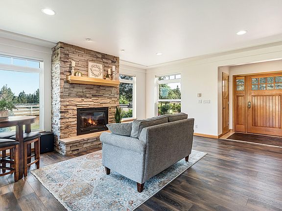Custom Ranch Home w/ Epic Mountain Views! Step into tranquility at this private ranch estate, meticulously crafted for hobbyists. Nestled in NE Bend with seamless access to Bend & Sisters, it offers urban amenities amid serene landscapes. The home boasts a custom chef's kitchen with granite countertops, a cozy family room centered around a stone fireplace. Entertain in the media theater or unwind in the expansive laundry/craft room. A 6-car tandem garage awaits car enthusiasts. Recent updates include a new furnace and heat pump, ensuring comfort year-round. For horse lovers, the property features essential amenities: 3-stall barn w/ tack room, shop, hay shed,& an outdoor arena. 6 acres of irrigated pastures offer ample space for grazing. This home embodies a perfect blend of comfort, luxury, and functionality. Whether you seek a peaceful retreat or a place to indulge your passions, this estate promises a lifestyle unmatched. Don't miss your chance to make this dream home yours today.