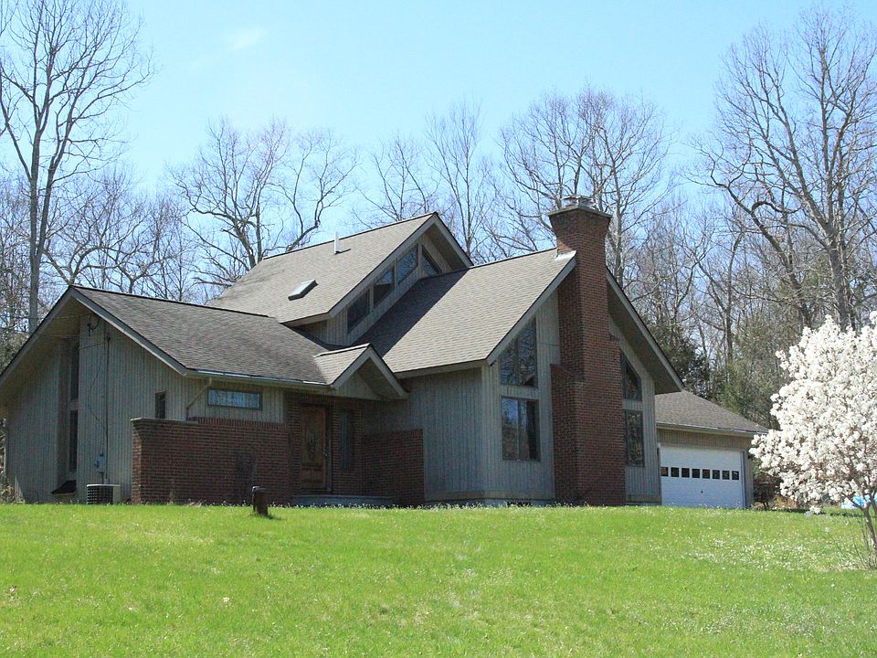 Bright 3 BR Cont. w/ seasonal water views of Blue Lake. Open Floor Plan w/ fireplaced spacious LR, an eat-in kitchen, 1st Flr MBw/ Ensuite, hardwoods, 2 car garage, 1st flr laundry, finished basement,lrg deck. with private back yard.House is sold "as is".