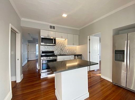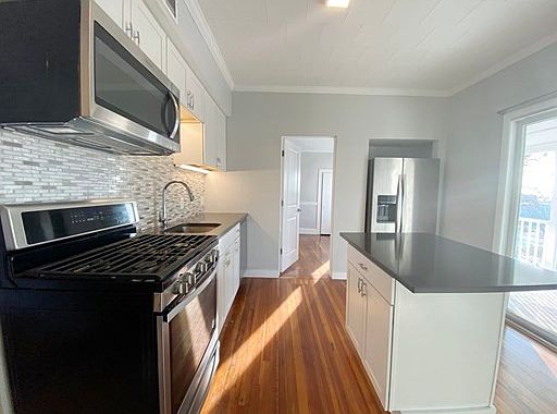 Available NOW, 1/2 Broker Fee!: Renovated unit in Orient Heights with flexible layout options, in-unit laundry, private back porch and central heat/ air conditioning, and large common yard/garden! Kitchen features stainless gas stove, dishwasher, microwave and fridge with ice maker/water dispenser. LARGE Master bedroom has a walk in closet, and second closet. Second smaller bedroom is off kitchen and could also be used as a study. Updated bathroom with tile, flooring and bathtub. Original floors have been refinished for added charm. Located in Orient Heights on the hill for great city views and light, easy access to Route 1A, .4 mile to Orient Heights Blue line T Station, and the 120/712/713 buses. Close to Renegades Pub, Donna's, Angela's Cafe, beaches, and Noyes Playground! Good credit, income verification and references required. 1st, security and 1/2 broker fee. Small pets negotiable.
