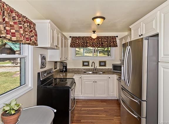 Your secret hideaway poised on over 14 acres awaits with over $100k in upgrades to the main house and a separate guest house built in 2016 appointed with hardwoods, granite and a soaking tub in the master suite. End of the road privacy bordering Moore creek in this idyllic setting complete with fresh mountain spring water, barn, chicken coop, workshop, 30x70 organic greenhouse, storage shed and over 800 sq.ft. of patio. Upgrades include gleaming hardwood floors, completely remodeled kitchen and baths, new windows, window treatments, new doors, electric, plumbing, fireplace restored and upgraded to a Rumford design for optimal efficiency and clean burning. Guest house also has 900 sq ft. of attic space for storage or could be finished. Own a piece of history with this land originally purchased in 1880 and used for farmland. Development potential zoned RM6 for multifamily, townhome and/or single family. Conveniently situated within a mile of Buncombe Sports Park, A-B Tech, Local Library, Schools, just 2 miles from I-40 and 8 miles to the heart of downtown Asheville.