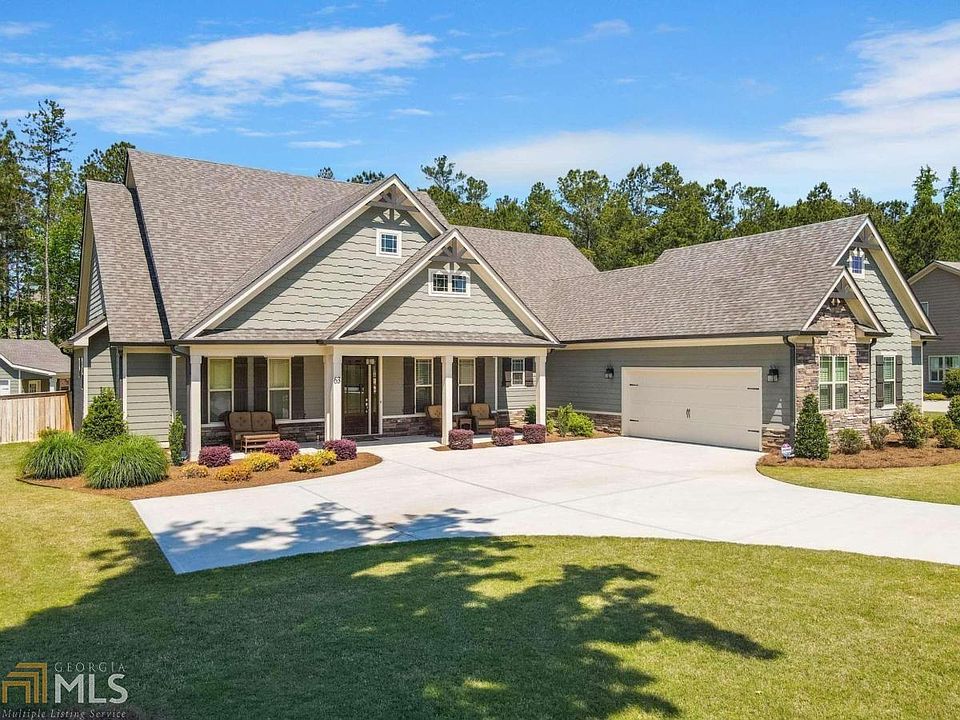 OUTDOOR LIVING heaven with a new inground pool AND a lake community. North Coweta's new lake community delivers a big win for people who want an easy commute to Atlanta but want a low-stress, amenity-rich lifestyle. The pristine 300+ acre lake is just the beginning, since the neighborhood also offers a boat dock and brand new amenities - community pool, bath house, huge pavilion with outdoor fireplace, tennis courts, pickleball courts, grand lawn, & playground! The mostly-one level living house features Upgraded designer finishes throughout! Hardwoods, shiplap, gourmet kitchen w/ custom cabinetry including hidden spice racks! Stainless appliances. You will not have a storage problem here! The EXTRA Large pantry even has a hidden closet inside, and the mudroom can accommodate your largest front-load washer and dryer--with pedestals, of course--and not feel cramped or small. The 2 1/2 car garage leaves plenty of room for more storage, even after you've parked the motorcycles, bikes, and a golf cart in the half bay. Master on main w/ HUGE walk in shower and walk in closet, jack-n-jill bathroom connecting spacious secondary bedrooms on main. Upstairs find a huge 4th bedroom / bonus room w/ private bathroom. THOUSANDS in upgraded landscaping and a custom wood privacy fence. Inground pool was added in summer 2020 and has all the cool stuff-- a baja shelf perfect for sunning yourself and staying cool, LED lights for night swimming and entertaining. Entertainment backyard oasis includes a covered patio with a fantastic outdoor fireplace, complete with tv and gas hookups, and room for furniture, grills, and extra pool equipment and toys. SPRAY FOAM INSULATION for energy efficiency. Agents, please note that the tax record in the official Coweta county record is correct, but CRS is NOT correct.