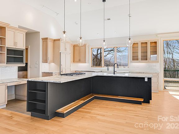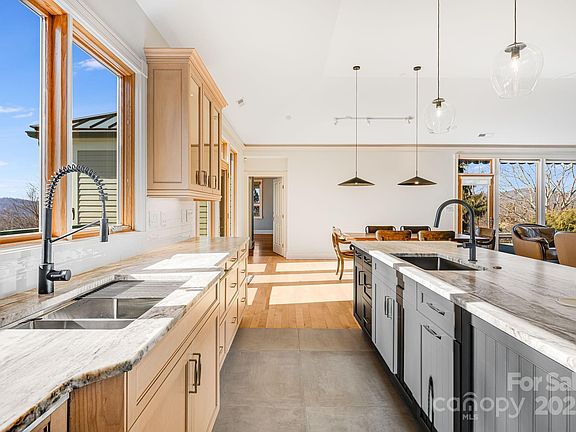NEW UPDATES This view is why people move to the mountains, and it’s breathtaking from every room in the home. Enjoy sunsets over Mt Pisgah & Cold Mountain. Mahogany front doors lead into the great room with tray ceilings & expansive vistas through a wall of windows. A flagstone patio overlooking beautiful gardens, meandering stone paths & captivating views. NEW elegant Chef's kitchen with subzero refrigerator, Fisher-Pakel dish drawers, large butler pantry replete with wall oven/warming drawer & add'l refrigerator. Custom double sink vanity & 2 walk-in closets w/built-ins grace the primary bedroom with sitting area. Office with marble floors/counters & more views! Large ensuite 2nd bedroom & den/bonus room. 3rd bedroom & full bath downstairs plus 2nd living quarters/apt w/separate entry, granite counters, laundry, large bedroom, walk-in closets. All beautifully finished. This private 11.47 acre sanctuary is only minutes from Asheville and every convenience.