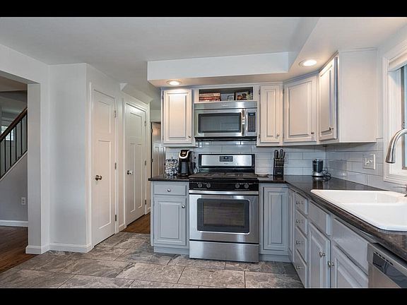 PERFECTION AWAITS YOU IN THIS RENOVATED CAPE! Tucked away on a quiet street this home has been tastefully updated. Open floor plan concept with great flow. The staircase has been opened up with beautiful railings allowing a sight line from the living room through to the dining room with refinished hardwood floors in both rooms which are flooded with natural light. Updated kitchen with grey cabinets, quartz countertops, sub-way tile backsplash, SS appliances and breakfast bar is open to the dining room. First floor bedroom with hardwood floors. Renovated first floor bathroom boasts a 4' shower. Two additional bedrooms upstairs are a great size. Second floor bath renovated with tub/shower, bead-board, tile flooring. Many upgrades include; recessed lighting, replacement of all doors, central air, new gutters and the interior painted. Great concrete patio added with new gazebo to enjoy the summer weather. Beautiful lawn. The rear yard was recently regraded and a new shed added.