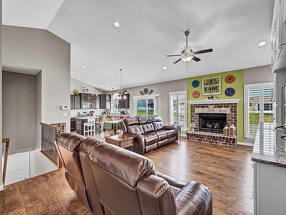 WHY WAIT TO BUILD? You will LOVE this 6 year NEW 3 bed, 2 bath, 3 Car 26’ DEEP Garage Ranch in desirable Austin Oaks! Built by CMS- Whitmore offers 1,615 sq ft. BEAUTIFUL Brick & Stone Front! Soaring 9 Foot & Vaulted Ceilings! Wood Engineered Plank Floors! Great Room w/ Brick Gas Fireplace, CUSTOM Wall Built-In Cabinets & Plantation Shutters! DELUXE Kitchen w/ CAMBRIA, Island, 42” Staggered Espresso Cabinets, Pantry, SS 5-Burner Gas Range & French Door Refrig stays! Dining leads to Patio & PREMIUM Hot Tub! Owners Suite w/ CUSTOM Wall Built-In Cabinets, Bay Window & Walk-In Closet w/ ORGANIZERS. Bath w/ Two Sinks, Corner Soak Tub, Glass Block Window, Full Size Shower w/ Seat. Bed 2 & 3 share a Full Bath w/ Transom Window. Main Floor Laundry w/ Built-In- W/D stay! Iron Spindle Stair leads to Lower Level w/ Bath RoughIn & Storage. Fenced Yard & Lawn Irrigation. Designer Smooth Skin Doors. Too many UPGRADES to list! Enjoy Pond, Shelter & Playground! TROY SCHOOLS. Only 13miles to Hwy 70/40!