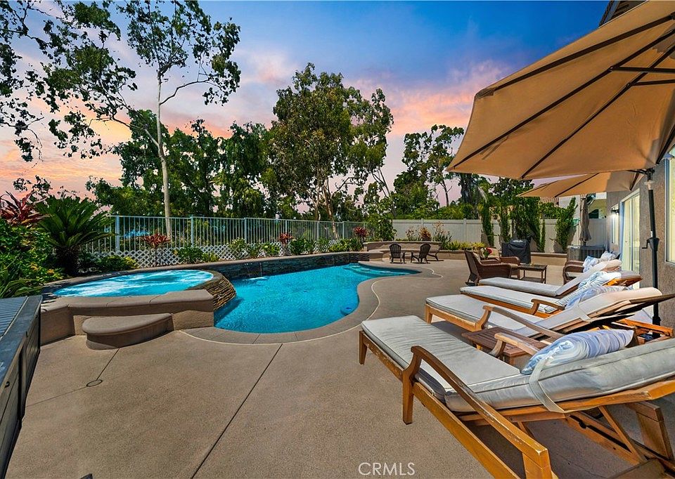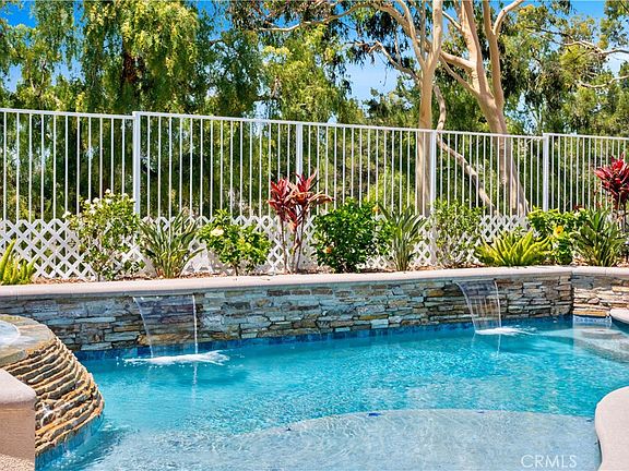 Welcome to your dream home in the heart of Foothill Ranch, Lake Forest! This stunning 4-bedroom, 3-bathroom residence offers nearly 1,500 square feet of modern living space, perfect for those seeking luxury, comfort and fun. The home boasts a recently upgraded kitchen with luxury built-in appliances, a full backsplash with upgraded hood, and quartz waterfall countertops—ideal for the home chef. A convenient downstairs bedroom with a full bath across the hall is perfect for guests or multi-generational living. Wide plank, wood-look luxury tile flooring adds elegance and durability throughout, and the built-in bar area with a wine fridge provides an ideal space for entertaining. Feel the space with vaulted ceilings in the Great Room and Primary Bedroom! And Yes, there is a 220V CHARGER PLUG IN GARAGE. Step outside to your very own outdoor oasis featuring a new (2022), custom-designed pool, featuring a gorgeous, hand-laid stone spillover from the 10-person spa, oversized baja shelf/tanning ledge, a swim-up bar with four stools, two sheer descents (cascades), pebble/abalone/glass surface, saltwater system and Pentair equipment. Enjoy gatherings around the gas fire pit while taking in gorgeous landscaping, stunning sunsets and peak-a-boo Catalina Island views. Updates also include new HVAC and whole-house fan, fresh interior paint and brand-new upstairs flooring, along with new interior doors, door casings, and baseboards. Situated on a cul-de-sac with incredible curb appeal, this home is walking distance to award-winning schools, hiking and biking trails, a community pool, athletic center, 5-star restaurants, shopping, and numerous parks. Additionally, it's just a short drive to beautiful beaches, Disneyland, and Knott's Berry Farm. Don't miss the opportunity to make this beautiful house your forever home. Schedule a viewing today and experience the best of Foothill Ranch living!