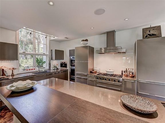 One of the most extraordinary AND PRIVATE locations in all of Sea Pines. Apx 150' of direct water-frontage w/private dock on Baynard Creek, just off the deep-waters of Calibogue Sound. Island-like setting between the rear tidal water and front lagoon. A compelling mixture of traditional Sea Pines architecture and high-end, ultra-modern finishes and amenities. Premium contemporary style kitchen and prep area that will meet the needs of EVERY Chef. Resort-like pool setting, w/covered and open-air patios. Show-room style garage with glass overhead doors.