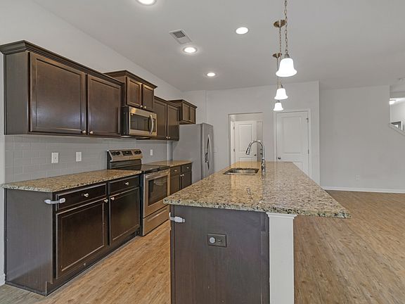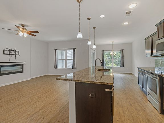 Modern 3 Bedroom, 2.5 Bath townhouse with an open floor plan. The kitchen includes a large island that overlooks the family room and dining room. Large master bedroom suite is upstairs with double vanities and two walk-in closets, 2 additional bedrooms and loft area. Two car garage and covered back porch. Located in The Commons. Community amenities include: pool, workout room, playground.
