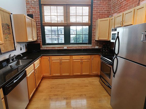 Gorgeous 2nd floor end unit condo on top floor of the historic Red Mill Lofts! Features an amazing bright kitchen with granite, x-large windows and a towering ceiling with skylight that's original to this historic mill building! The kitchen is appointed with Stainless Steel appliances. Soaring ceilings with wood beams, exposed brick walls give this unit a unique industrial character with modern preferences such as Central Air-conditioning. Open floor plan, stunning restored original hardwood floors throughout. Master suite with full private bath, double sink vanity, and a huge adjoining walk in closet. Perfect 12 x 8 separate den for home / office workers! Second bathroom has laundry with washer and dryer included. Gorgeous large windows invite tons of natural light and custom blinds throughout the unit! One level unit on second floor with an elevator in a secure access building. Oversized secured private storage space in basement. Carport offers assigned sheltered parking with lots of additional parking in large lot, or park right next to this unit on Park Ave. Owner occupants would benefit from the 25% Homestead Tax Exemption which is not reflected. Convenient shopping & very quick highway access to 146, 295, & 95. No dogs or FHA status.