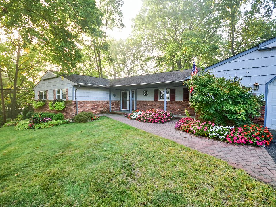 Spacious 3 BR 2.1 bath Ranch in Move in Condition on quiet tree-lined street. Updated BA's. Sliders from LR & Fam Rm to Patio adjacent to beautifully landscaped backyard. Built-in garage. Large lower level with walk-out access to the back yard. Master suite with walk-in closet and master bath with double vanity & stall shower. Paneled den with wood burning fireplace & parquet floor. Kitchen with granite counters and separate dining area and access to garage thru mud room/laundry area.