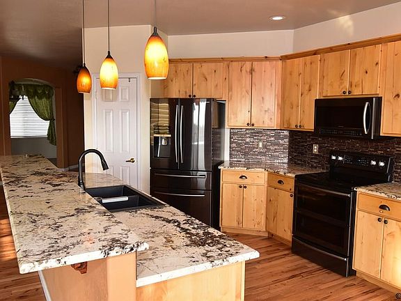 PRICE REDUCED. Beautiful executive style ranch home on a full walk out basement. Hardwood floors have just been refinished and are gorgeous, new roof in 2018, new hot water heater 2019, new garage door and new refrigerated central air in 2020. Fresh interior paint. This home is truly move in ready. Enjoy the kitchen/living room combo with an attached deck just off the living room. Stunning views of Canon City from the deck. Great for entertaining. The kitchen has granite counters, black stainless appliances and a pantry right there. There is a formal dining room or you could make it your office. Nice sized master suite with a walk-in closet. The basement has a 15x23 game room with a walk out door that leads to a 11x45 concrete patio. There is also a second large master bedroom suite in the basement with a walk-in closet and a shared bathroom. Dont miss the giant 20x25 storage room in the basement. This home has been well maintained. Pride of ownership shows. Come take a look.