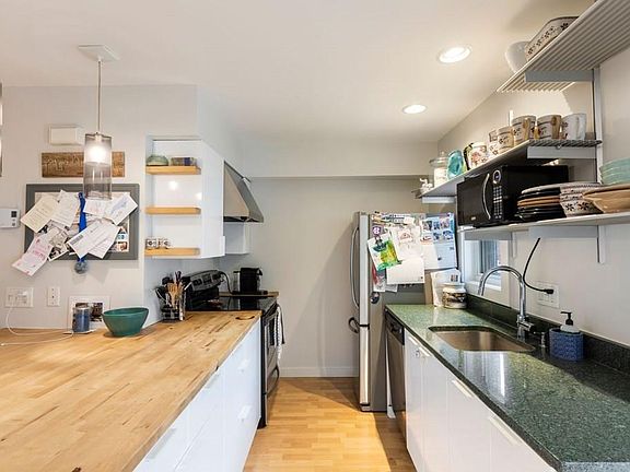 Landlord pays fee! Fantastic townhouse for Oct 1st! 2 bedrooms/1.5 baths spread over two levels, laundry in unit, small deck off the kitchen and 1 off street parking spot included! Built in bookshelves in the large living/dining area open to the kitchen which has stainless appliances. Great closet space! Small pets considered!
