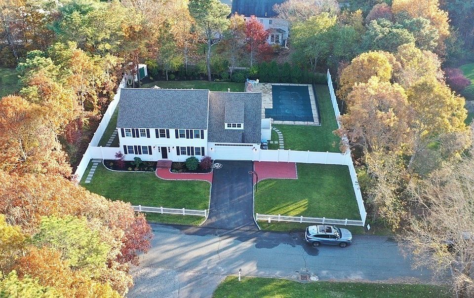 Experience effortless living in this meticulously maintained Colonial home with resplendent hardwood floors. The first floor features a gracious foyer, a stunning kitchen with stainless appliances, granite countertops, and a gas fireplace in the living room. A versatile formal dining room doubles as an office, with a full bath, laundry, and a sunlit den overlooking the private yard and swimming pool. The second floor boasts four spacious bedrooms, including a grand primary bedroom with an en suite bath and walk-in closet. Recent upgrades include a new Heating and CAC system, a pristine pool, and a fresh roof. The finished basement offers versatile space, and the exterior features a new bluestone patio, fenced yard, brick walk, and parking spot. Practical features include a 2-car garage, in-ground irrigation, and a storage shed. Located in a vibrant community with easy access to beaches, biking trails, golf courses, and dining/shopping options.